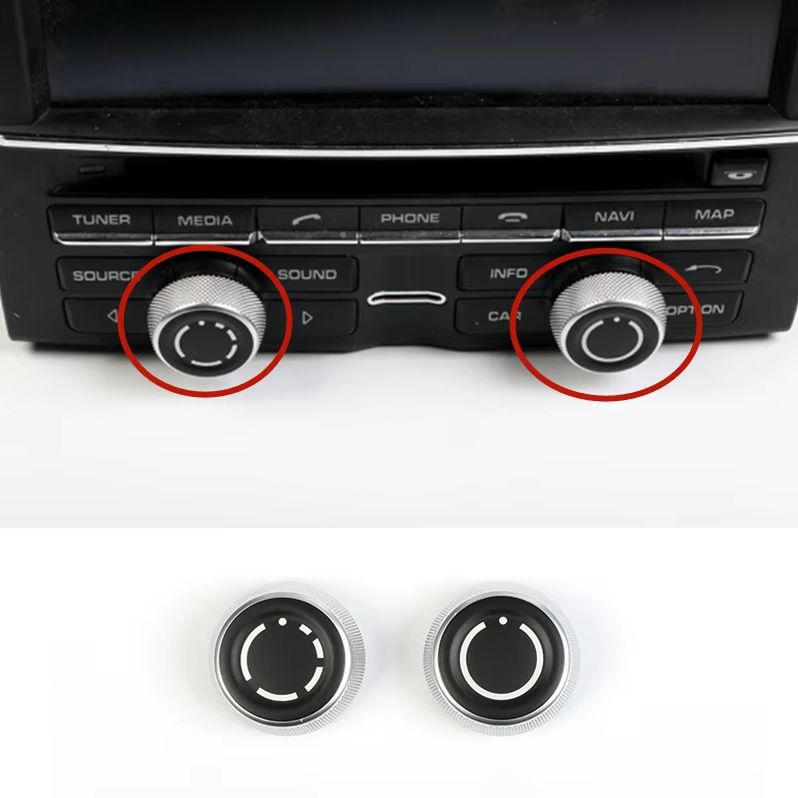 Stříbrný knoflík hlasitosti a ovládání rádia pro Porsche Boxster, Cayman, 911, Panamera, Cayenne, Macan (2009-2021)