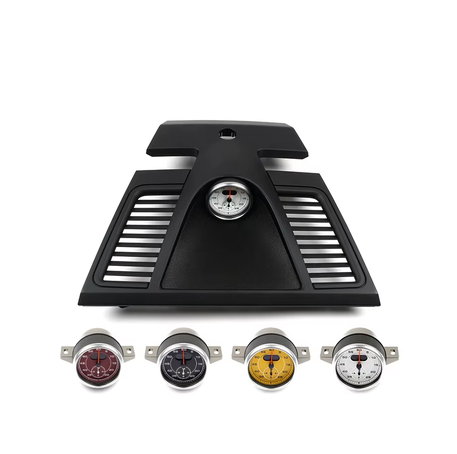 Díl je určený k montáži analogového Chrono budíku do palubní desky. Držák je přesně tvarován tak, aby elegantně zapadl do střední části palubní desky a umožnil bezpečné a estetické uchycení Chrono budíku. Vyroben z kvalitního plastu s povrchovou úpravou odpovídající originálním interiérovým dílům Porsche.